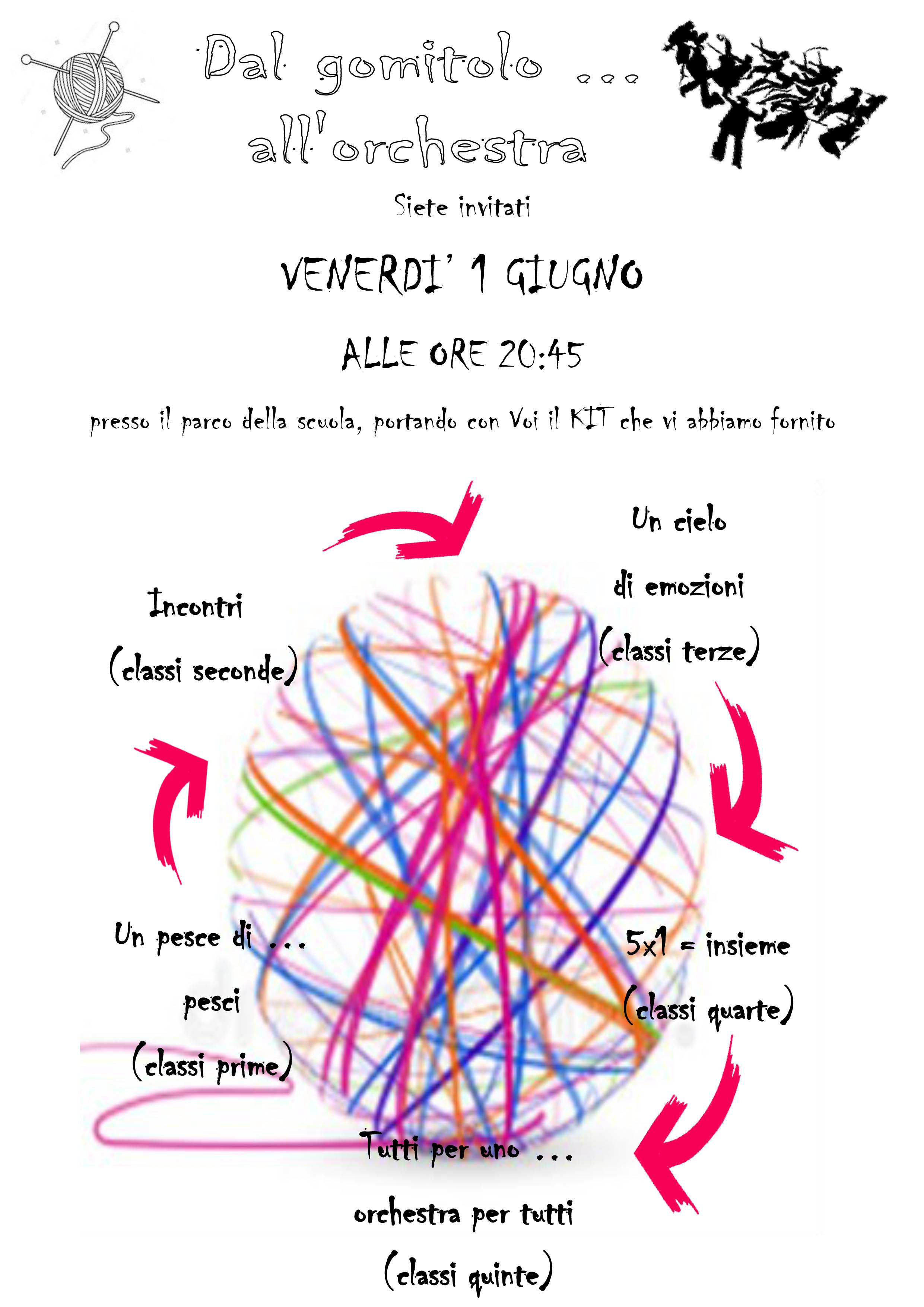 Gli alunni della scuola primaria di Urago d’Oglio vi invitano venerdì 1 giugno 2018 alle ore 20:45 presso il parco della scuola per la festa di fine anno “Dal gomitolo…all’orchestra”