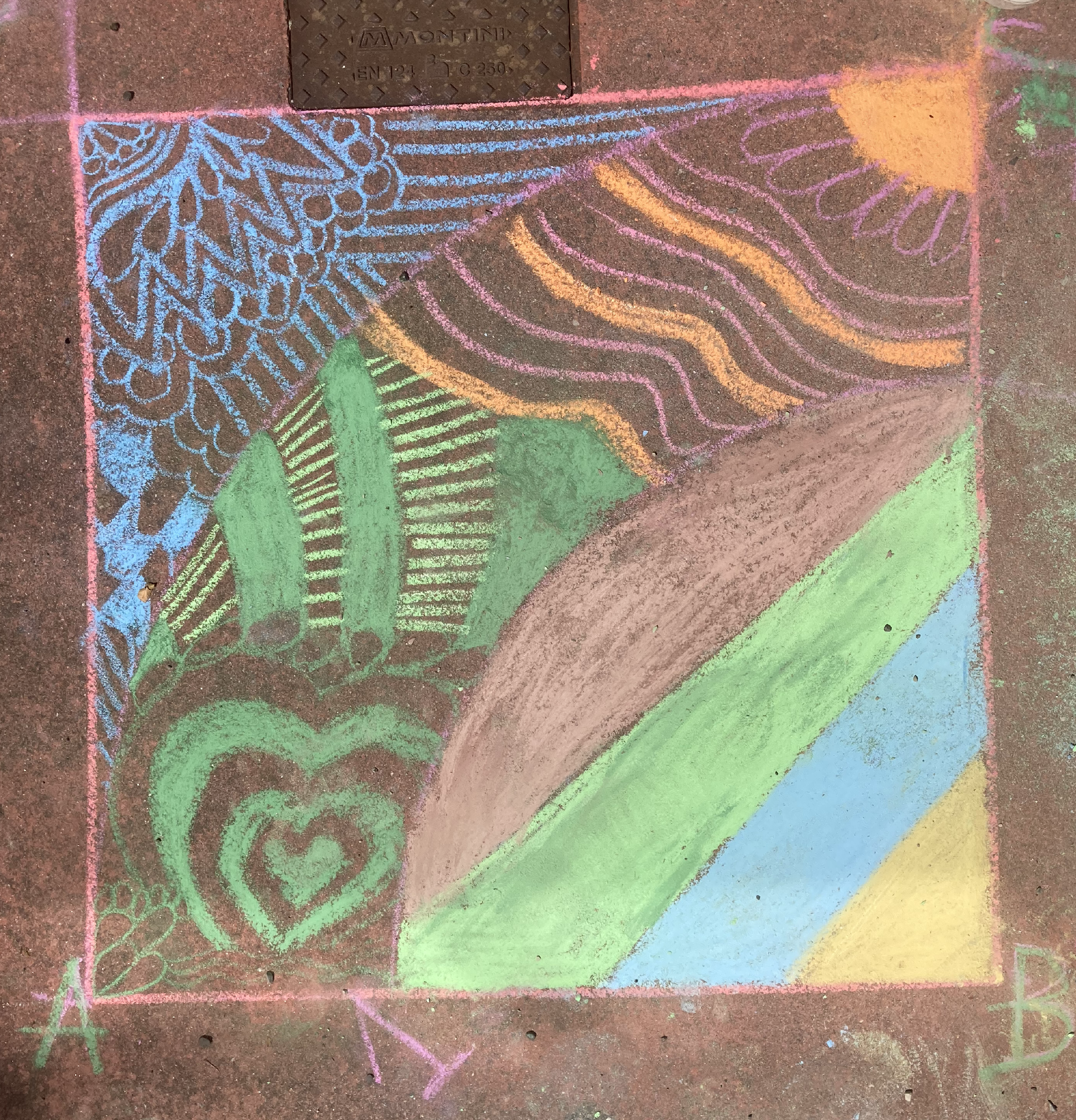 Disegno geometrico con i gessetti colorati.